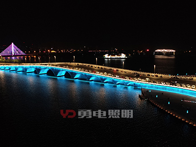 天地橋橋體部分跨度極長(zhǎng),橫跨海面,是整個(gè)照明工程的重要組成部分。