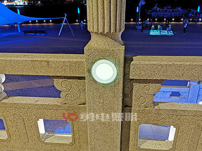 橋上的扶手也同樣匠心獨(dú)運(yùn),欄桿上使用的是勇電定制DM120地埋燈,鑲嵌在其中,美觀大方。