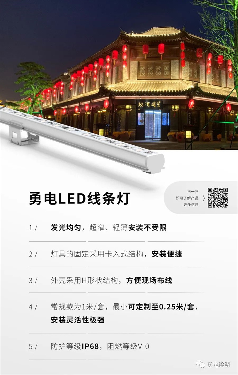 勇電LED線條燈外殼與走線槽采用一體化設(shè)計(jì),安裝線路布置隱秘,不影響建筑白天觀感 ,同時(shí)我們對(duì)近人視角的地埋投光燈進(jìn)行了防眩光處理,確保過(guò)往游人觀賞體驗(yàn)感。